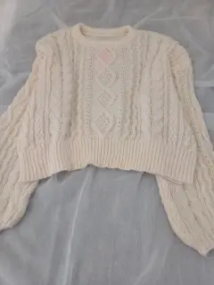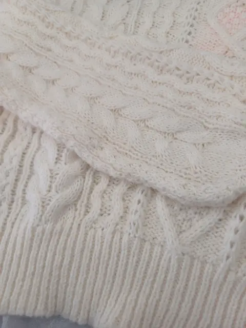 🌸Hermoso suéter tejido de color huesito. Es grueso y holgadito. Muy bonito 🌸🪻Sus medidas son ax a ax 63 CM, largo 51 cm.