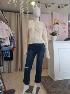 Suéter beige tejido. 🌸Hermoso suéter tejido de color huesito. Es grueso y holgadito. Muy bonito 🌸🪻Sus medidas son ax a ax 63 CM, largo 51 cm.
