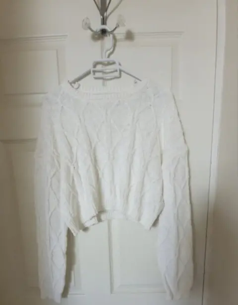Suéter en color blanco , ligero, largo a la cintura, talla L
