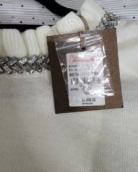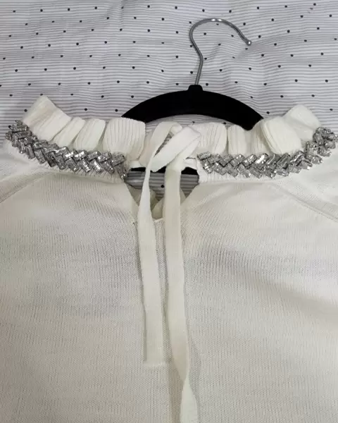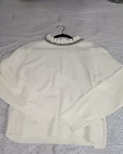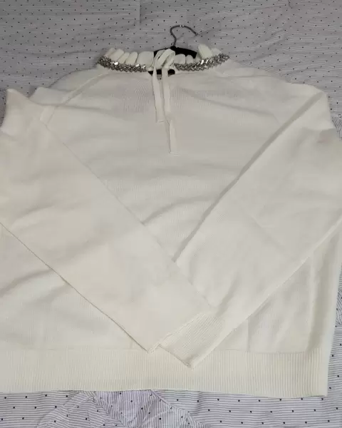 Suéter blanco muy elegante con cuello plizado y pedrería en elSe abrocha por atrás del cuelloTALLA XGNUEVO CON ETIQUETA DE PALACIO DE HIERRO