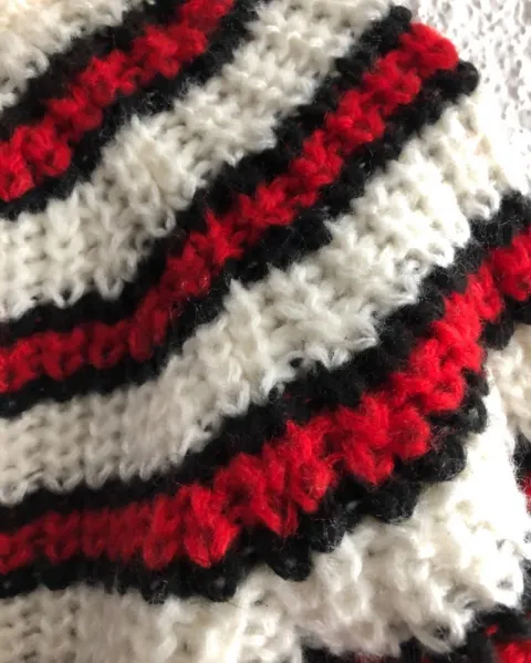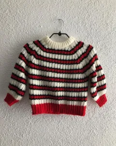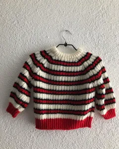 Suéter blanco, rojo y negro. Suéter blanco, rojo y negro, Zara Fancy Collection, 100% acrílico, talla 5 años, manga 42 cm, axila a axila 38 cm
