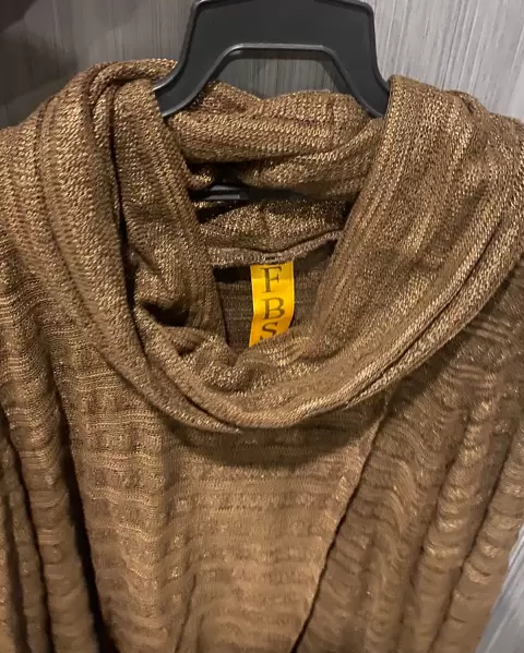 Suéter Café 🤎. Suéter con transparencia, cuello olgado, bolsas de los dos lados enfrente, apertura en medio, color café brillo, aparenta estar tejido pero realmente no!