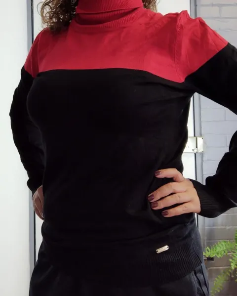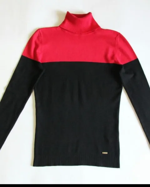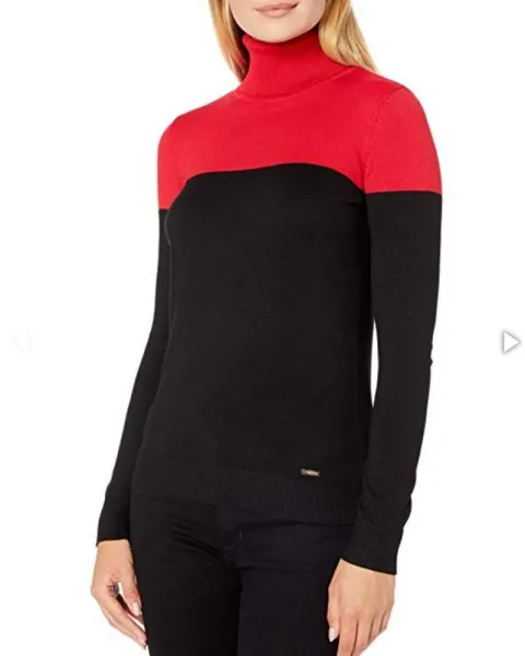 Suéter nuevo Calvin Klein, negro con rojo talla m. La modelo pesa 66kg y mide 1.61 está súper hermoso!!!