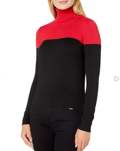 Suéter Calvin Klein. Suéter nuevo Calvin Klein, negro con rojo talla m. La modelo pesa 66kg y mide 1.61 está súper hermoso!!!