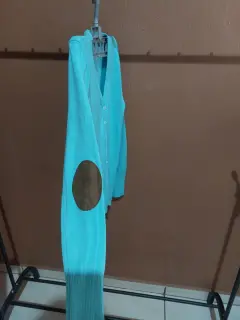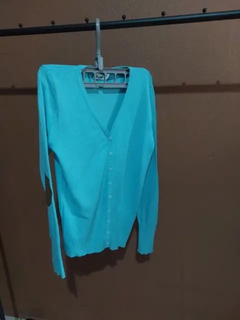 Suéter color azul. Suéter azul estira es unitalla con coderas color café. En excelente estado.