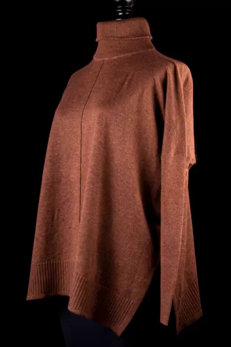 Suéter color café estilo oversize. Hermoso suéter color café, estilo oversize con cuello alto y manga larga. Es talla S, pero puede quedar a M, L o XL. Tiene 70 cm de axila a axila y 63 cm de largo.
