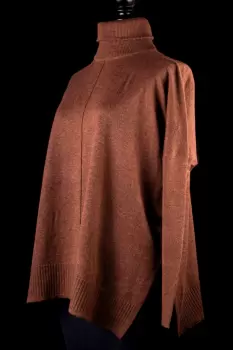Hermoso suéter color café, estilo oversize con cuello alto y manga larga. Es talla S, pero puede quedar a M, L o XL. Tiene 70 cm de axila a axila y 63 cm de largo.