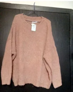 Es un suéter tejido color melón, es muy calientito, muy cómodo, para nada estorboso.Totalmente nuevo y sin ningún detalle