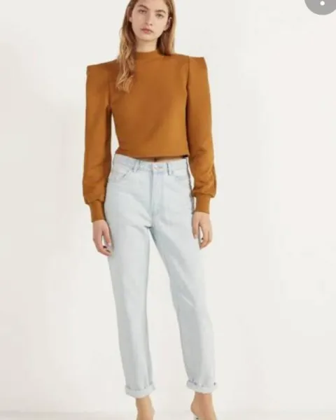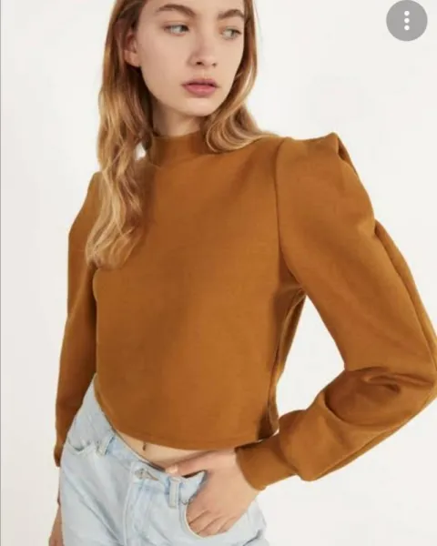 Suéter con Mangas abombadas. Blusa tipo suéter color Mostaza. Con hermosas mangas diseñas para crear efecto elegante. En talla M