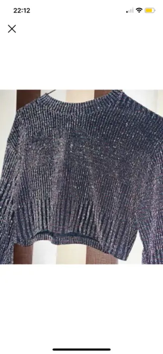 Suéter corto, brilloso está muy lindo Tipo crop top, queda arriba del ombligo