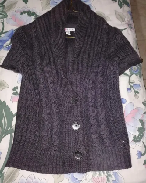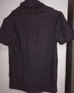 Suéter de punto, manga corta, de botones, cuello alto de atrás!!! Muy bonito