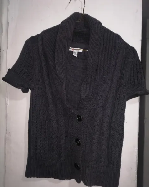 Suéter corto manga corta de punto!!!. Suéter de punto, manga corta, de botones, cuello alto de atrás!!! Muy bonito