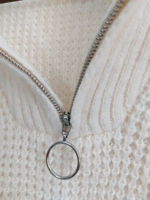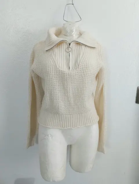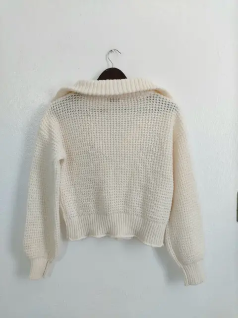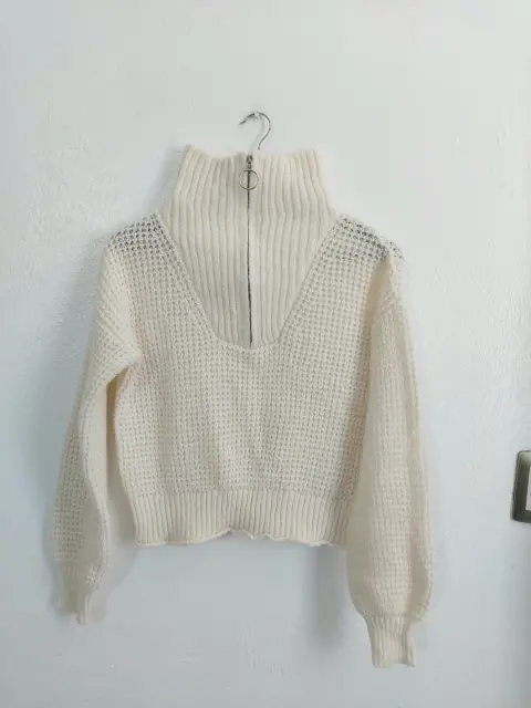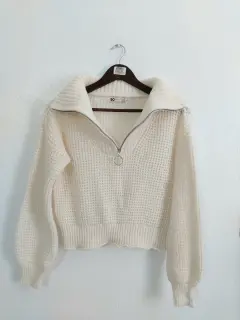 Suéter crema super calientito. Está super belloNuevo sin etiqueta!Talla M y queda sin problema a S.Color crema/beigeNo queda tan largo pero tampoco tan corto, checa la foto en el maniquí.Sin detalles!