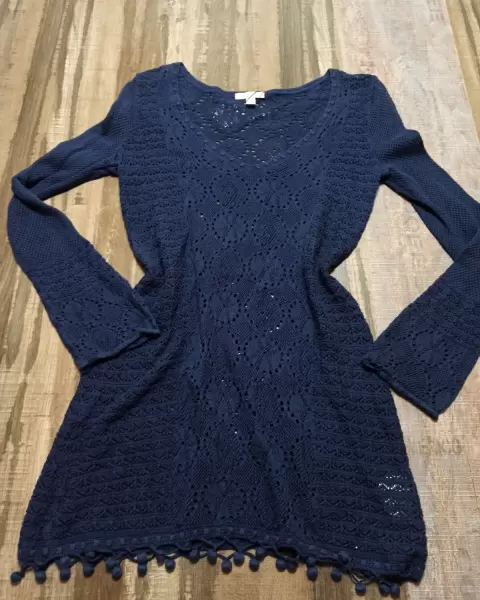 Suéter crochet azul marino. Hermoso suéter crochet con bolitas en la parte baja, muy bonito y femenino, sin ningún detalle