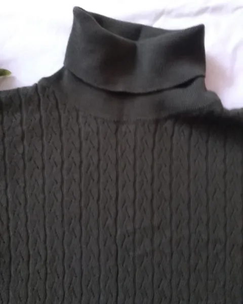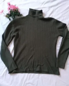 Bonito suéter verde militar, cuello de tortuga , en buen estado , de lana