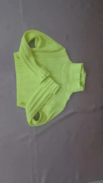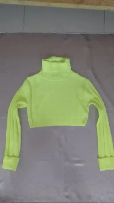 Suéter corto, tejido, manga con doble puño, color verde neon, llega a la cintura.