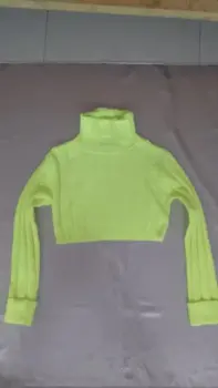 Suéter cuello de tortuga. Suéter corto, tejido, manga con doble puño, color verde neon, llega a la cintura.