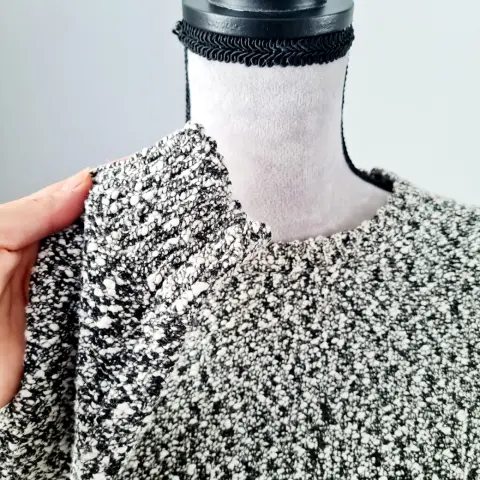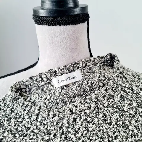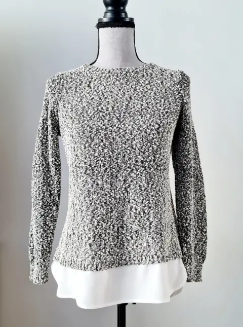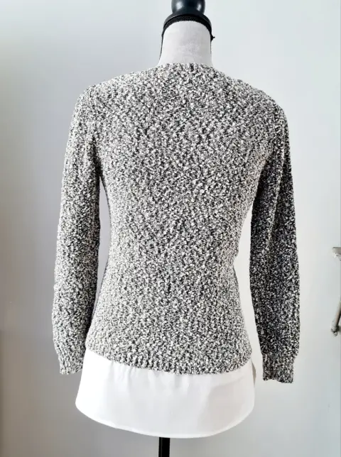 Suéter CV blanco y negro. Suéter de algodón sin detalles, en la parte de abajo simula tener debajo una blusa blanca.Sus medidas son:Busto: 46 cmCintura: 44 cmLargo: 63 cm