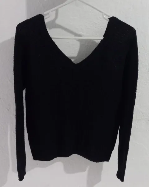 Sueter color azul marino pero se ve casi como negro, en buen estado, tiene algunas bonitas por el uso.