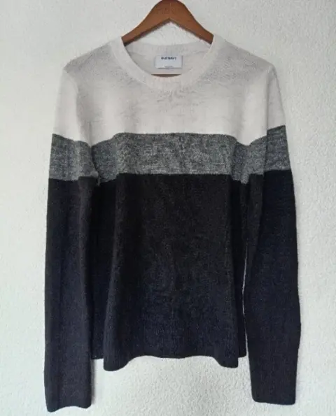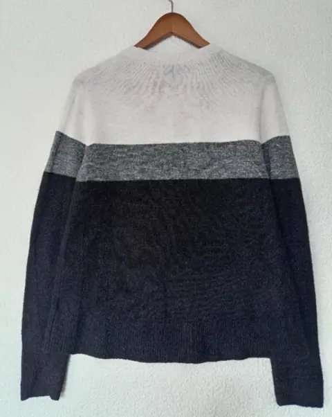 Suéter de bloque en colores negro, gris y blanco, medidas de axila a axila 51 cm. En perfecto estado