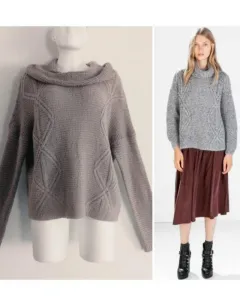 Suéter de cuello holgado con rombos. Lindo Suéter de cuello holgado con rombos, tejido de hilo café grisáceo con hilos de discretos brillos color plata, talla XL posible para grande también.