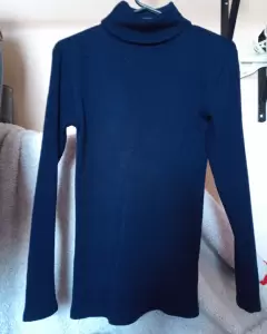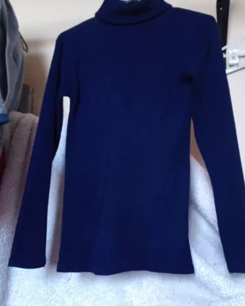 Suéter de cuello se tortuga. Blusa azulManga largaDe cuello de tortugaTalla chica medianaLa tela estiraTotalmente nueva.Nunca la he usado pero no tiene etiqueta.