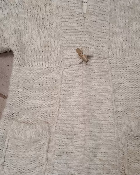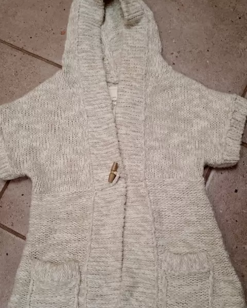 Precioso suéter de lana muy suavecito (no pica), boton de madera, bolsillosenfrente, capucha, manga corta, la marca habla por si sola