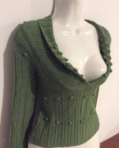 Suéter verde de diseño de punto, manga larga y escotado.Hermoso y diseño único. Lucirás genial✨ ♡♡DISPONIBLE PARA ESTAR EN TU CLOSET♡♡✨