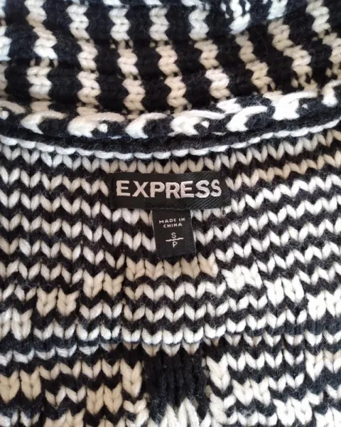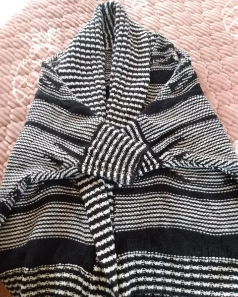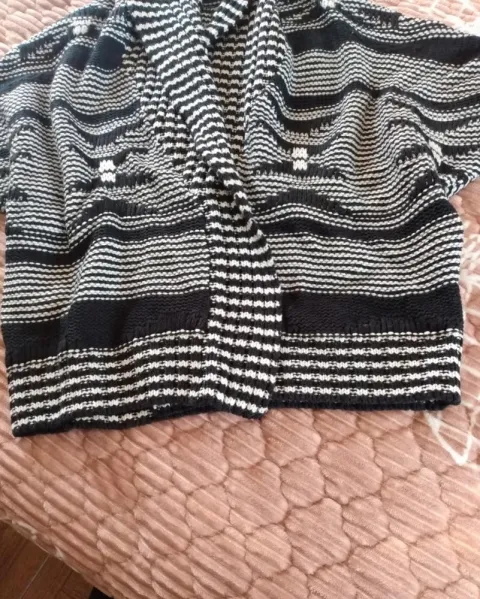 Suéter de punto. Hermoso suéter, calientito blanco y negro la manga va flojita , llega a, la atura del codo. La talla dice S, pero quedaría hasta una talla L.