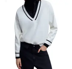 Suéter de punto. Hermoso suéter estilo Jersey de tejido de punto color blanco talla M amplio