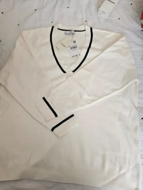 Hermoso suéter estilo Jersey de tejido de punto color blanco talla M amplio