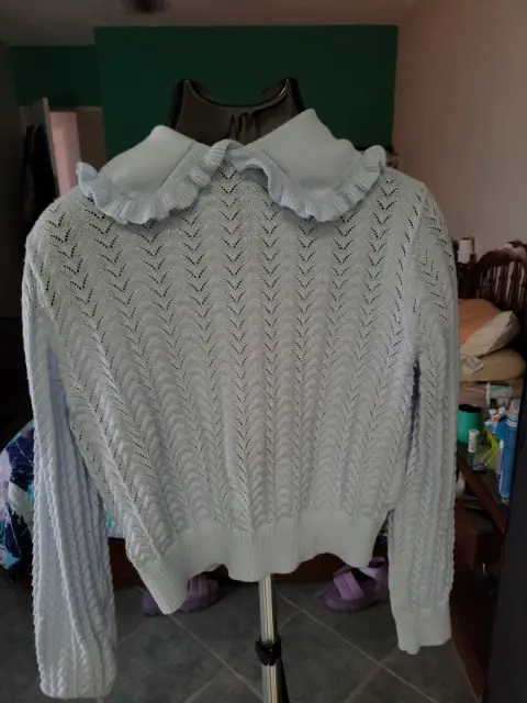 Sueter de punto. Sueter color ázul de punto con un hermoso cuello ideal para usarlo entre temporadas