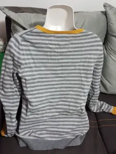Hermoso suéter de rayas, cuello y puño color amarillo mostaza, ideal para outfit casual o de oficina, amolda muy bien, colores conservados
