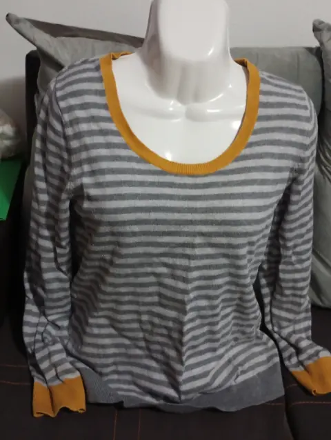 Suéter de rayas. Hermoso suéter de rayas, cuello y puño color amarillo mostaza, ideal para outfit casual o de oficina, amolda muy bien, colores conservados