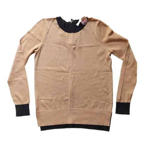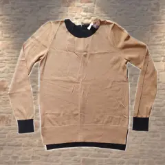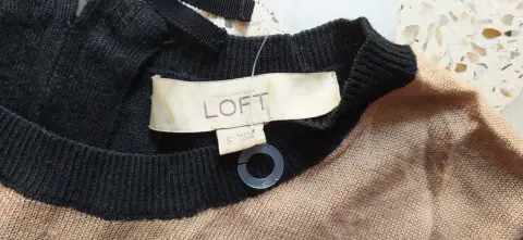 Suéter delgado camel con negro, marca Loft, talla S, hecho de poliéster y lana, es ligero pero calientito a la vez. Para usarse con outfit casual y formal.Hombro a hombro 34 cm.Axila a axila 46 cm.Largo total 65 cm.Si te gusta otra prenda, podemos negociar el precio.