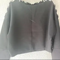 Suéter elegante. Tiene frente suave a rayas blancas y negras. La espalda es tela lisa color negro. Lo puedes usar con vestido, jeans o mallas. Para usarlo casual o para ir de fiesta.