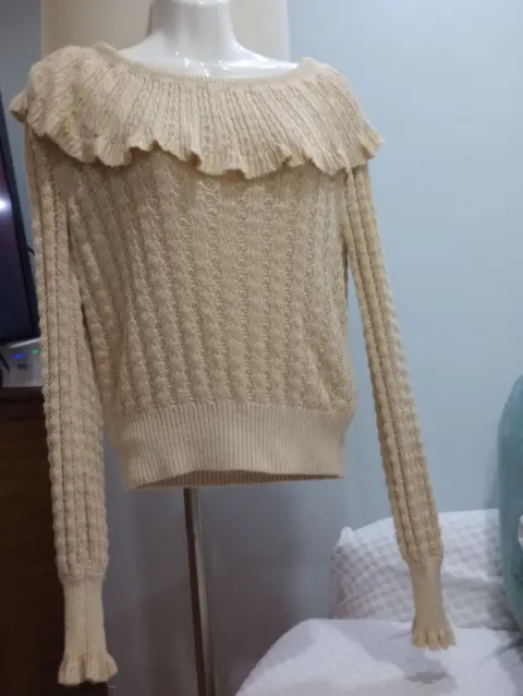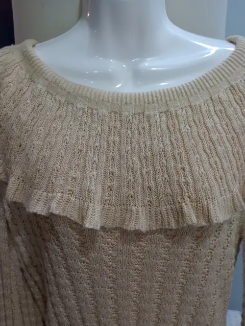 Hola. Vendo suéter Free People, talla chica, de lino, rayón y espándex, suave, cálido y ajustable al cuerpo, tipo tejido. Como nuevo, sin defectos.