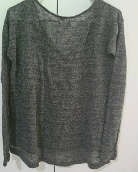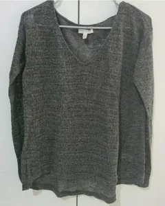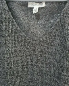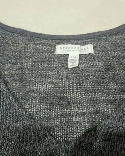 Suéter 75% de poliester color gris brilloso de Aeropostale, talla L queda ajustado de las mangas y holgada del abdomen se puede poner con una camiseta de tirantes abajo.