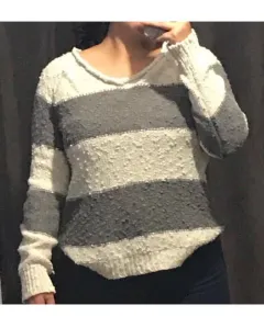 Suéter gris-blanco. Suéter súper lindo con una tela bien calientita, muy cómodo, ningún detalle.