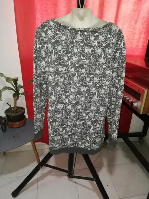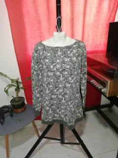 Suéter Gris Largo. Floreado en blanco, este suéter largo gris es ideal para la tarde casual 🌑👁️⛰️🗿 imperdible en tu Guardarropa 💅😻✨😌