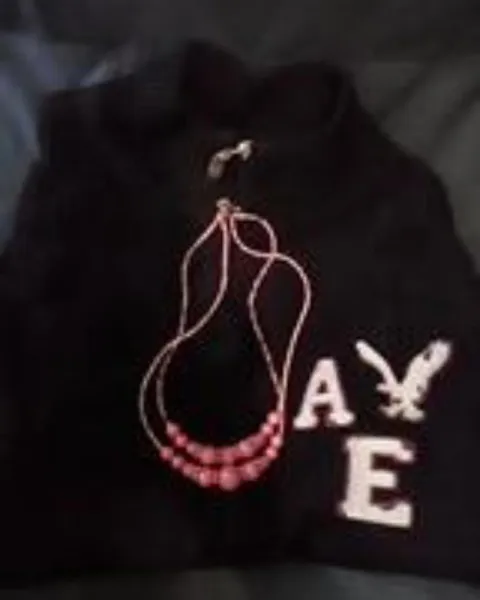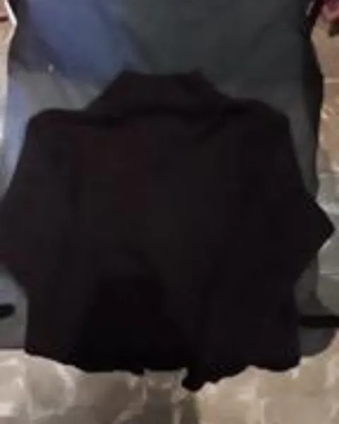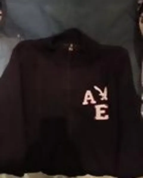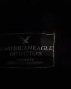 Sueter tejido fino en color negro american eagle con logo de la marca bordado en hilo blanco es abierto pero con cierre de acero inoxidable talla M