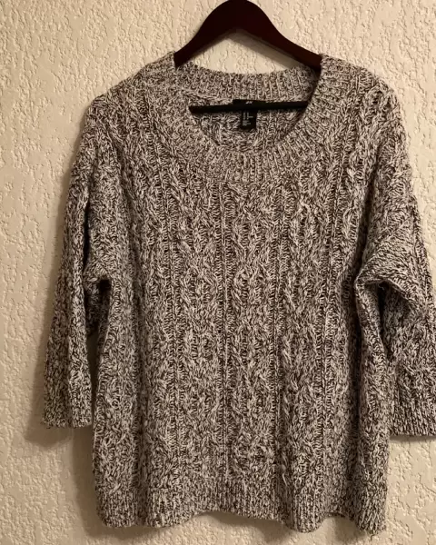 SUÉTER H&M T/M. Hermoso y amplio suéter de punto, gris claro con hilos negros, sin detalles.