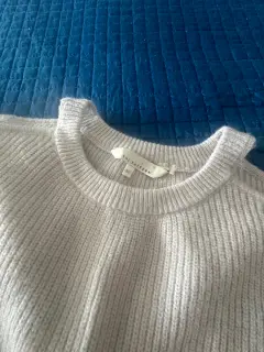 Suéter color azul claro, súper calientito y muy coqueto al quedar los hombros descubiertos
