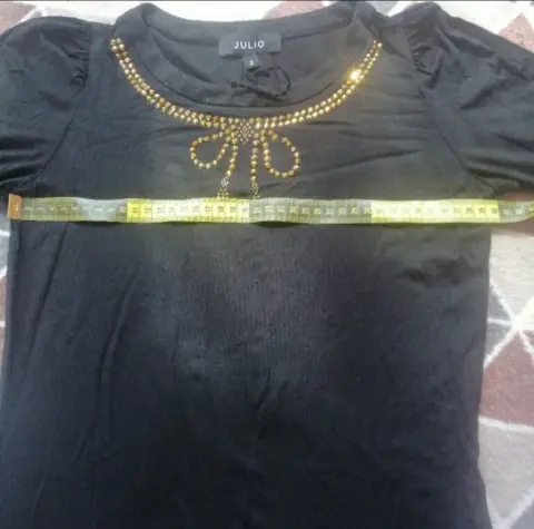 Hermoso sueter tipo blusa de la marca julio en talla 2, es de tela delgada y ajustable al cuerpo con mangas un poco abombadas y tiene detalles dorados enfrente.En las fotos dejo medidas pero la tela estira aprox 10 cm mas