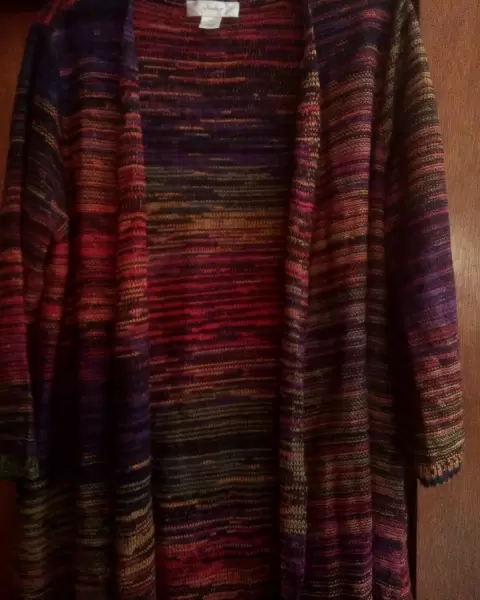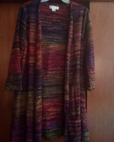 Sueter largo. Es un bonito suéter fresco y colorido;la textura no es raspoza.Medidas:Largo: 79cmLargo de brazo: 59 cm desde donde parte hombro.