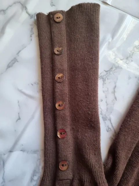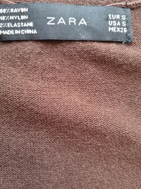 Suéter largo. Suéter completo, cuello V,color café, talla S ,marca ZARA.En la manga tiene botones hadas el antebrazo, no es nuevo, tiene algunos detalles.Precio a tratar ,pongo el mínimo de app.
