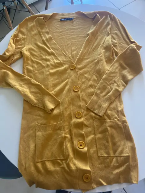 Suéter largo. Hermoso suéter lego color mostaza con bolsas al frente sin detalle