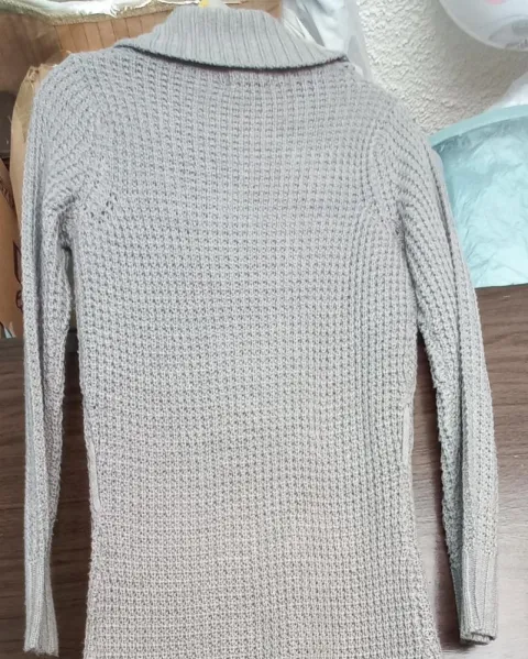 Sueter largo gris. Suéter largo tejido, sin cinta con botones grandes, sin ningún defecto.
