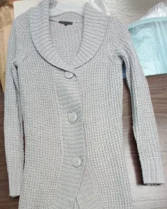 Suéter largo tejido, sin cinta con botones grandes, sin ningún defecto.