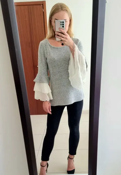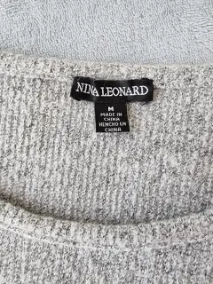Suéter largo nina leonard elegante. Suéter muy lindo clásico nina leonard. Talla M, se puede sin problemas para la talla L. La tela es calentita, muy suave. El diseño es super bello! Esta Nuevo